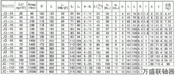 JQ型-夾殼連軸器基本參數和主要尺寸
