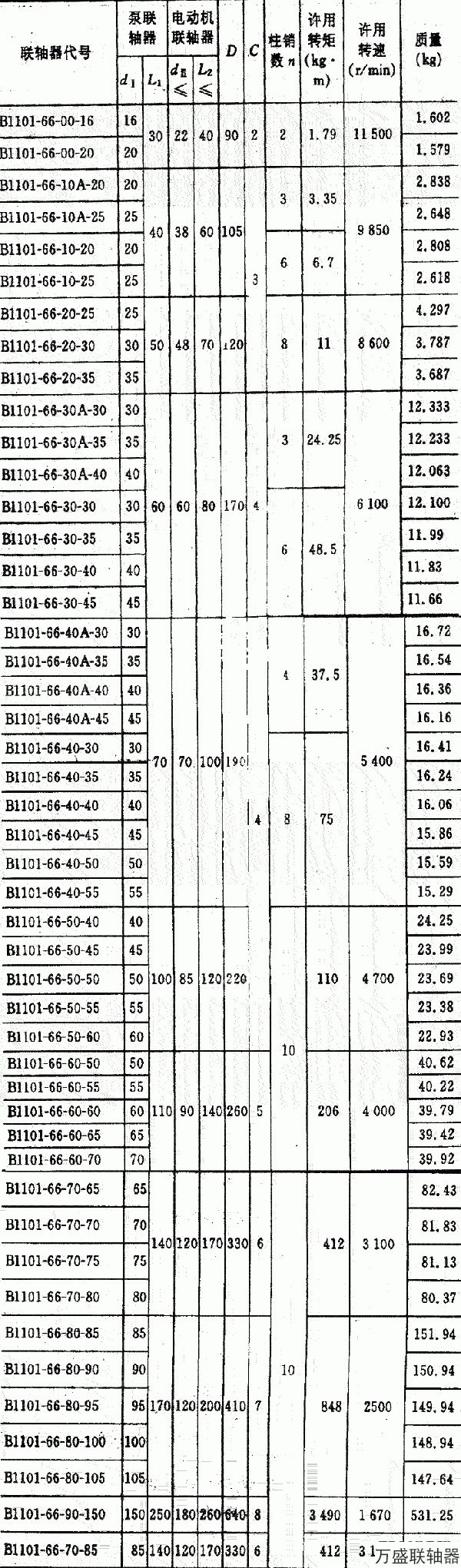 ⑤水泵行業的標準為Bll01,其*大許用轉矩為8316N·m,*大軸徑為200mm.
